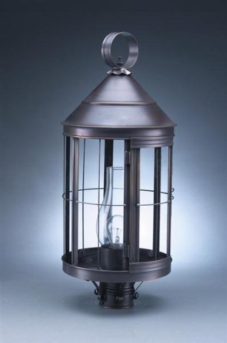 #Northeast Lantern 3353 This lighting fixture is hand made in New Hampshire from 100% brass or copper materials. Includes a lifetime guarantee, except for glass. UL Listed. The all natural finish that will not peel or flake off. Features: -Post lantern. -Heal collection. -Available in multiple finishes. -Available with Clear, Clear Seedy and Seedy Marine glass types. -Constructed with a door and tabs for effortless removal and installation of glass panels. -Mounting Area: 3" Diameter. -Made in the USA. -Manufacturer provides lifetime guarantee. Specifications: -Accommodates (3) 60W Candelabra base bulbs. -Overall Dimensions: 25" H x 10" W x 10" D. Finish: Raw Brass, Glass Type: Clear Seedy