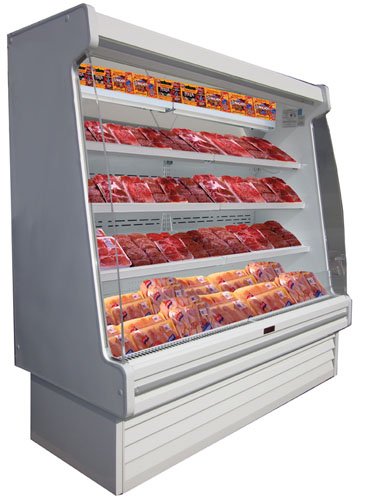 Meat Open Merchandise Refrigeration Designed with Sloped Top Curved Ends, Remote Refrigeration, Size: 78.5 X 34.5 X 51